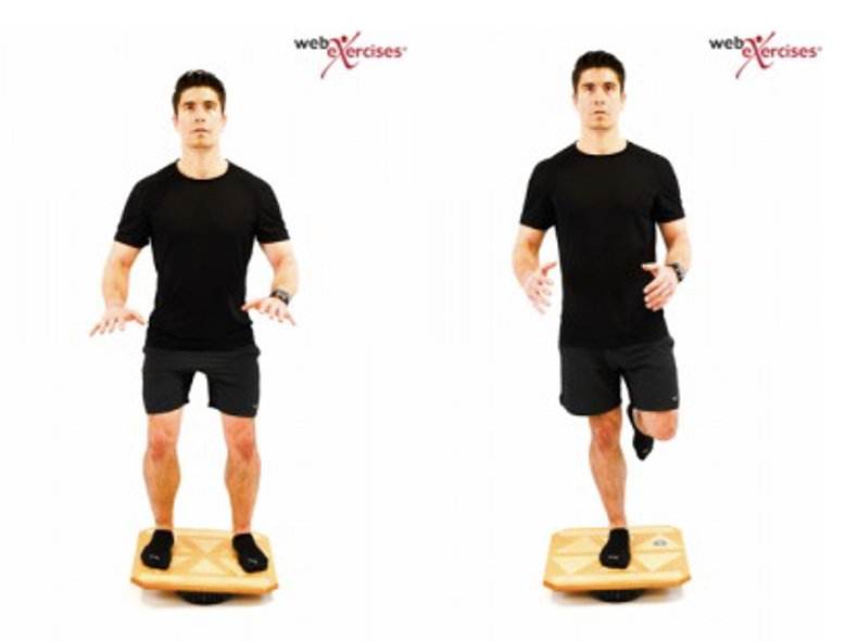 Önceki değerlendirmede olduğu gibi, bu test aynı zamanda danışanınızın dengesini geliştirmeye yönelik bir egzersiz olarak da kullanılabilir. Yukarıda belirtilen süre değerlerine ulaşabildiklerinde, ilerleme için denge tahtası (balance board) kullanılabilir. Denge tahtası, ayak bileği rehabilitasyonunda etkili olduğu kanıtlanmış bir araçtır. Verhagen ve çalışma arkadaşları, Hollandalı voleybol takımlarında bir sezon boyunca uygulanan egzersizler sonucunda, denge tahtası antrenmanlarının ayak bileği burkulmalarının tekrarlanmasını önlemede etkili olduğunu göstermiştir. Denge tahtası egzersizleri, daha ileri seviyelerde sağlık topu ile pas atışları eklenerek zorlaştırılabilir.