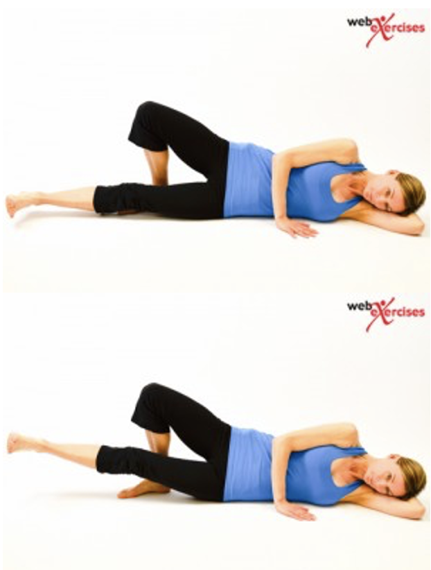 Side Lying Hip Adduction: Yan yatış pozisyonunda başlayın, başınızı elinizle destekleyin. Alttaki bacak düz, üstteki bacak dizden bükülü şekilde, düz bacağın arkasına yerleştirilmiş ve ayak tabanı yere basıyor olmalıdır. Core kaslarınızı aktive edin. Düz bacağı yaklaşık 15–20 cm yukarı kaldırın ve yavaşça başlangıç pozisyonuna indirin. İç uyluk kaslarınızın çalıştığını hissetmelisiniz. 3 set × 12 tekrar uygulayın.