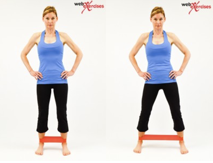 Gluteus medius kasını aktive etmek için benzer bir yan yatış pozisyonu kullanılabileceği gibi, direnç bandı yardımıyla ayakta, fonksiyonel bir pozisyonda da çalışılabilir.