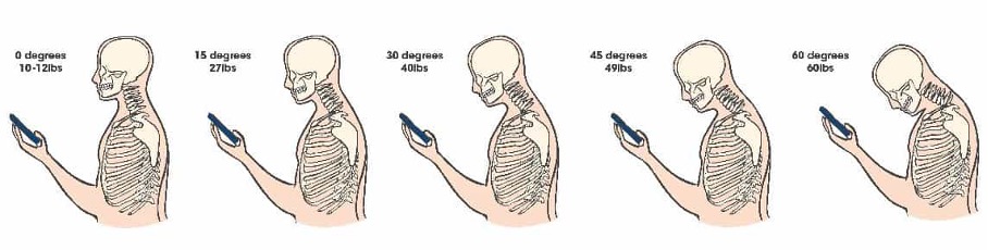 Yetişkin bir insanın başı yaklaşık 4,5–5,5 kg ağırlığındadır; ancak kişi elde tuttuğu cep telefonuna bakabilmek için boynunu fleksiyona getirdiğinde, boyun üzerine binen göreceli yük yalnızca başın ağırlığından çok daha fazla artar (Hansraj, 2014).