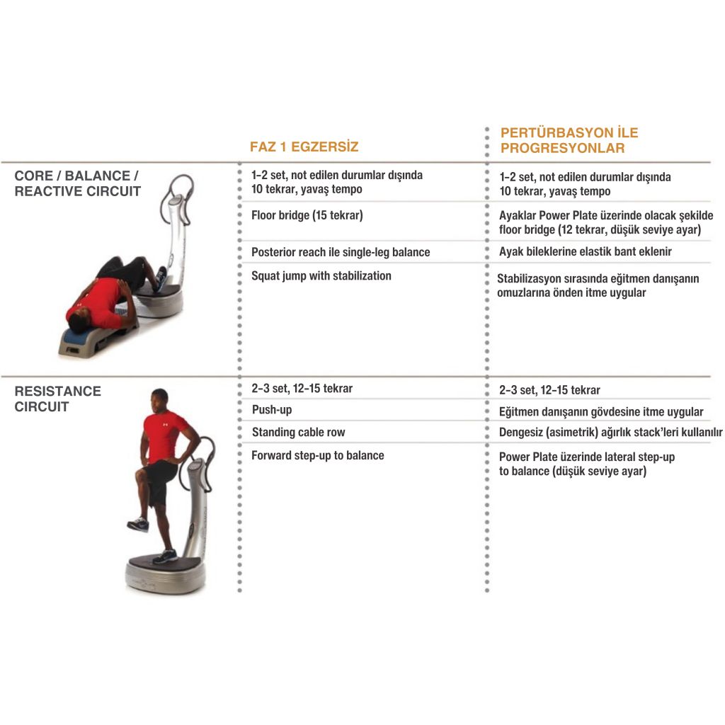 - TÜM VÜCUT TİTREŞİMİYLE: Titreşim platformu üzerinde squat veya push-up egzersizleri gerçekleştirilir.